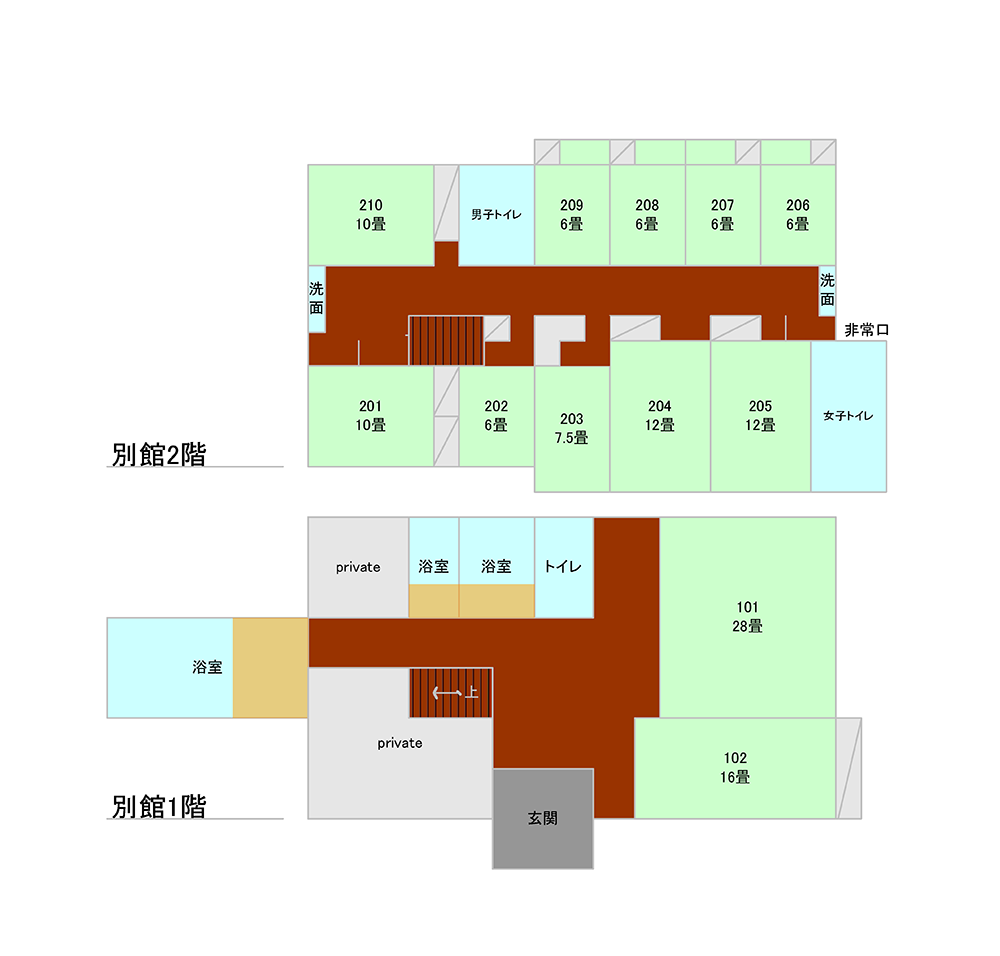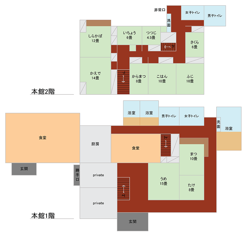 上記平面図(PDFファイル)をダウンロードすることができます。合宿等の部屋割りご検討等にご利用ください。